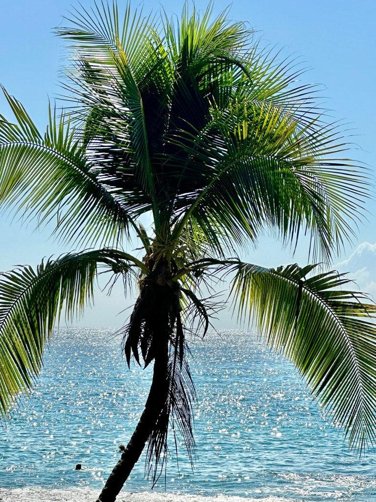 It was lovely swimming in the cool, turquoise water, but eventually our time was up and we putted over to the island for lunch. Fresh, panfried fish, accompanying by traditional rice and beans and salad, washed down with not so icy beer was just the ticket after a couple of hours in the water. Afterwards, one of the other girls and I decided to be most decadent and ordered Pina Coladas in pineapples to drink in the sea after our lunch. It was nice and cool in the water and hot out so it really was a no-brainer to just stay there until we got the call to get back on board the boat for departure.