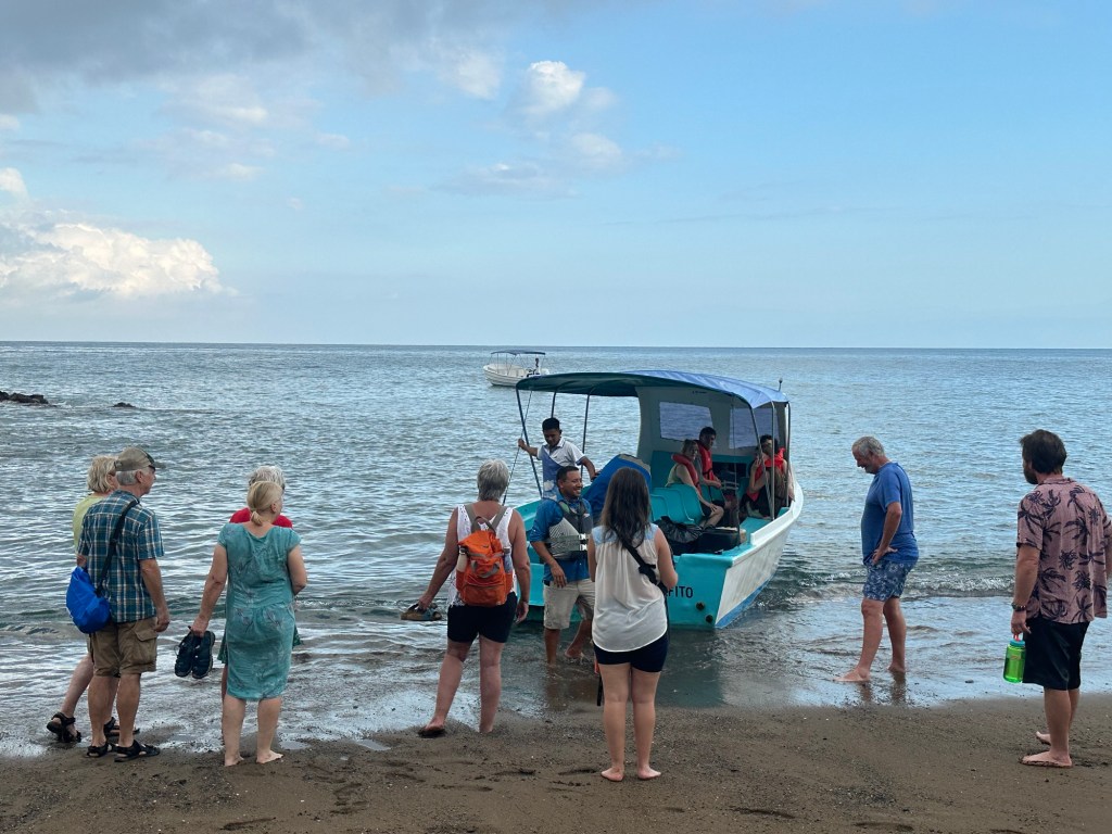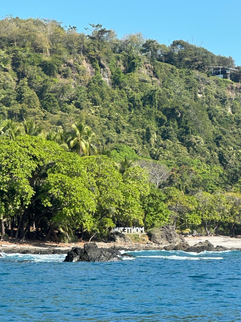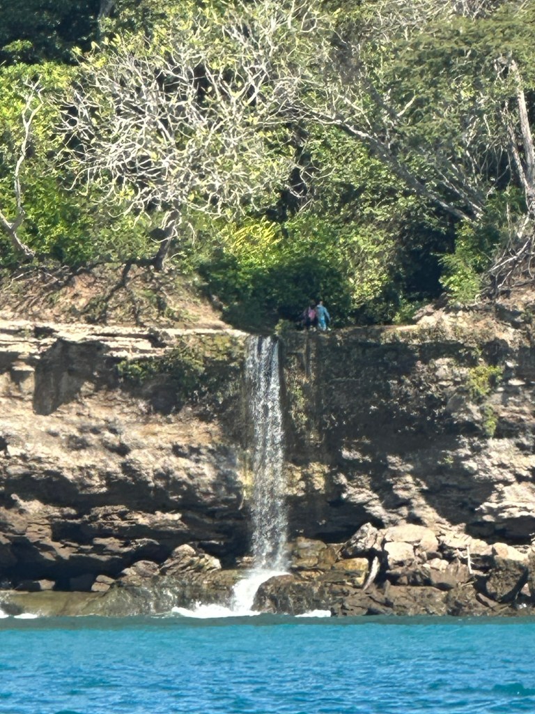 We walked down to the beach and piled onto the awaiting boat. Then, we were off zipping along the pristine, palm-clad coastline at a good rate of knots. We stopped midway to see the El Chorro waterfall, one of only seven waterfalls in the world that plunge directly into the sea. As it was dry season, the flow wasn’t immense, but it was still pretty impressive to see from our little boat out at sea.