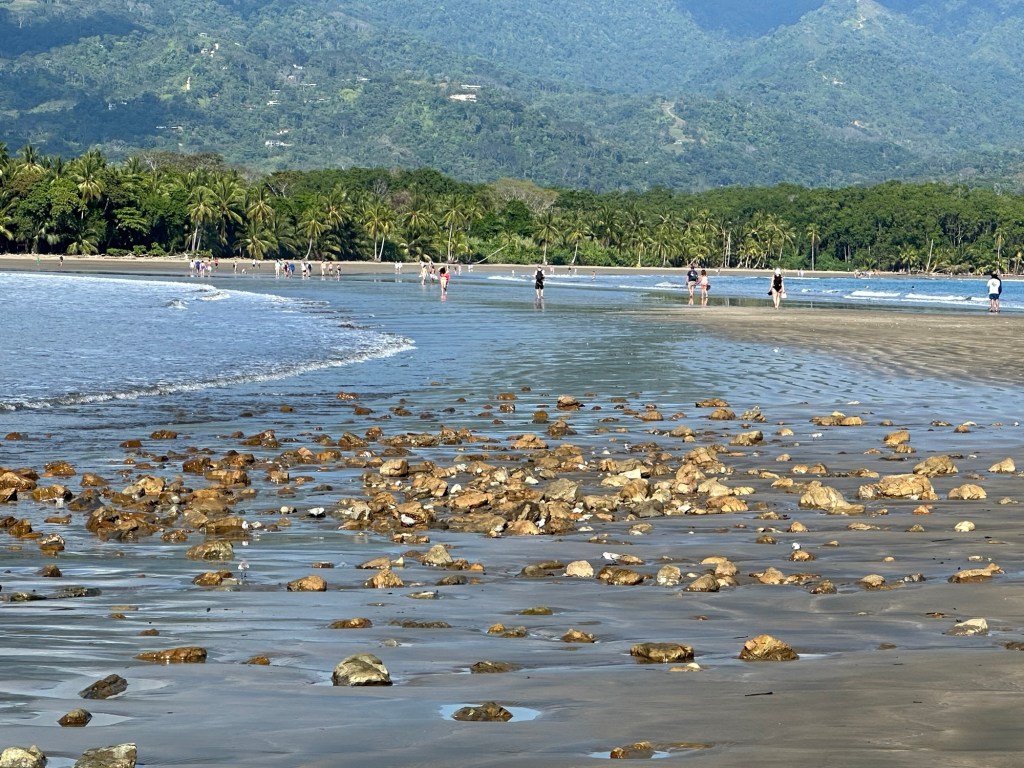 I popped out at Rio Uvita where an hombre was fishing with his son. It was a picturesque lagoon and I dearly wanted to take a dip, however, the señor was most adamant it wasn’t safe due to the presence of crocodiles. I had to settle for a swim in the rip-prone sea instead which prevented me from going too far in. Still it was refreshing and prepared me for the walk back along the beach.