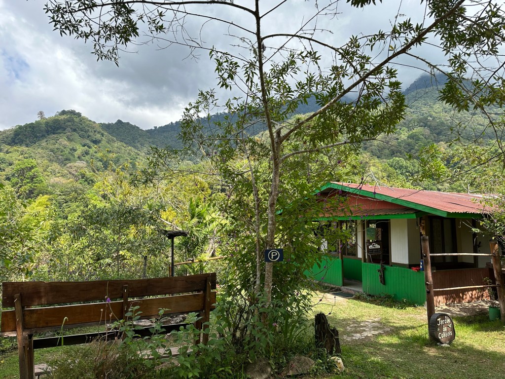 Just when I thought this road would never stop its steep descent, it began to flatten out. At this point, at a bend, we noticed a little building that looked like it could have been a cafe or something so went to investigate. It happened to be a hombre’s house which he allowed visitors to come and birdwatch. There were a couple of guys from the UK doing exactly that and who were also staying at Cloudbridge so we got more reliable information about the remainder of the journey there. It seemed we had done most of the hard work and the final 700m was relatively easy going. We left our packs with the hombre there and continued on our way.