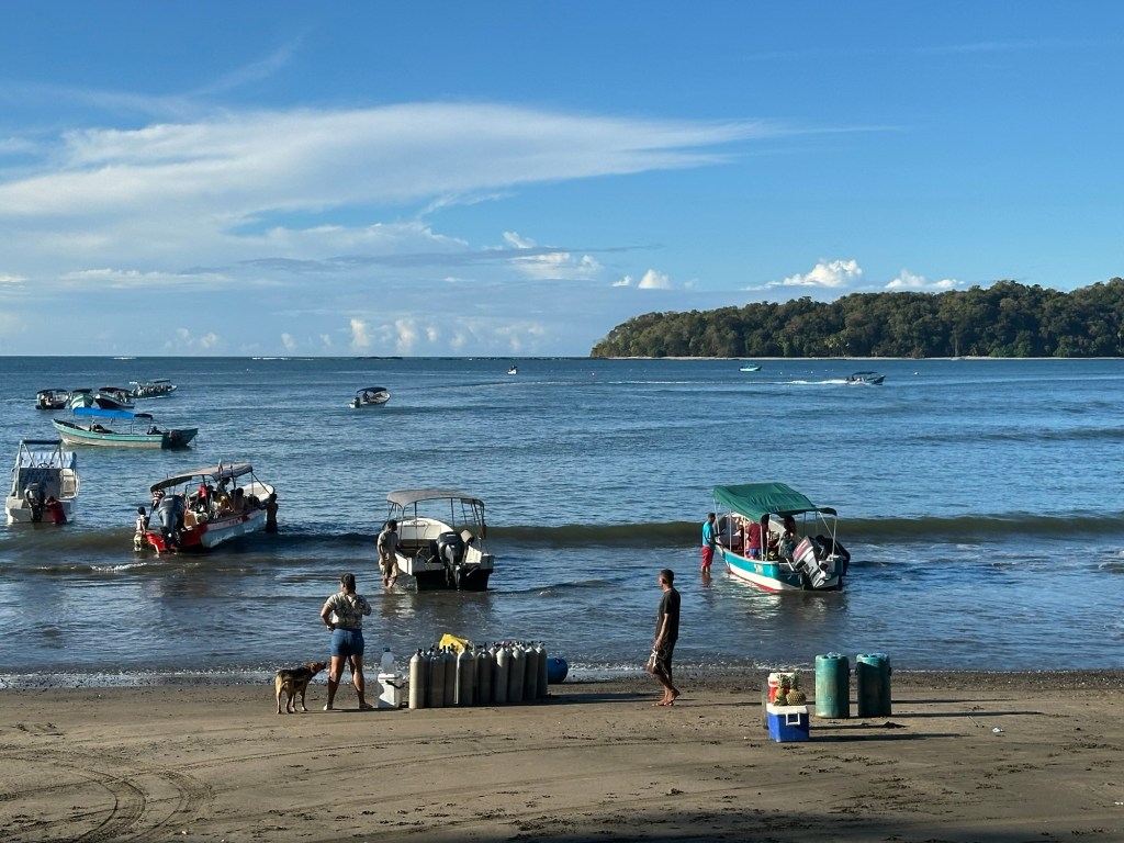 It was an early start, but a pleasant walk in the cool of the morning down to the village for my snorkeling tour of Parque Nacional Coiba. The tranquil soundtrack of birds chirping and the occasional dog barking were quickly drowned out, however, by the crowd that had amassed onshore with the same aim as myself. Numerous little boats bobbed in the surf just offshore, waiting their turn to beach and collect their passengers for the day. Other boats, having already completed that task were already speeding off.