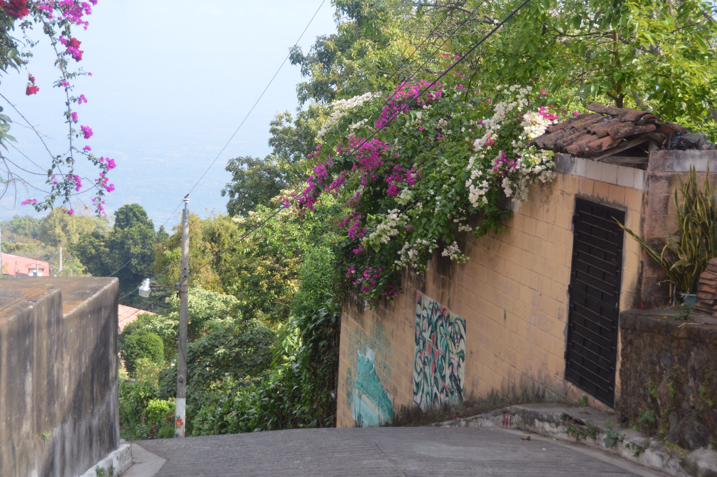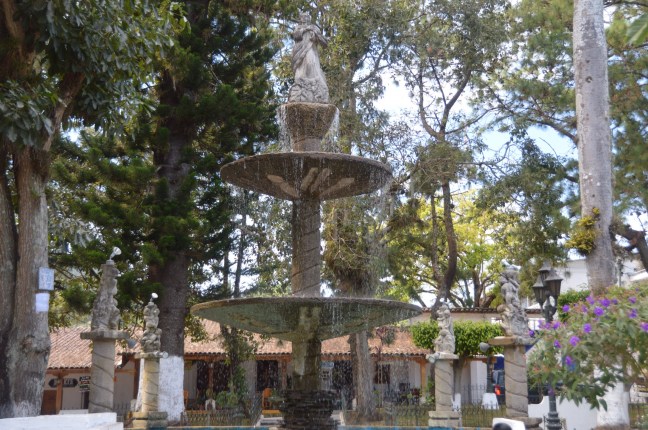 I don’t know why they chose this particular part of El Salvador to call the Route of the Flowers, as I had travelled in many other parts of the country with the same beautiful flowering plant vistas, but it certainly did live up to its name as it traversed through gorgeous little cobbled stone towns, all with the ubiquitous Salvadorian liberal splash of vibrant colour. Ataco was no different, with a beautiful white and azure trimmed church in the main plaza and a matching one further down the road, nestled in front of a hill. An impressive water fountain took centre stage of the plaza and immaculate gardens lined the paths cross crossing its centre.
