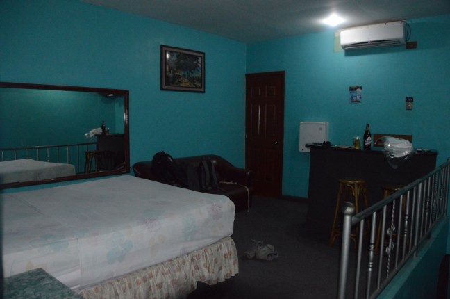 Out along the main highway, the driver asked which place I would prefer to go to and rattled off a few names. I told him I hadn’t been here before so didn’t know any of them. El señor driver then decided to turn into Hotel de Tres Ases, a brightly lit expansive highway motel. He drove into the property and pulled into a ground floor garage. I was a bit confused and asked where reception was. He said just go up the stairs and knock. Hmmmm. I went upstairs straight into a motel room. A closed door led into an ensuite bathroom. Another closed door was locked from the other side. I ran downstairs to find the taxi gone and garage door closed. I found the switch for the door, grabbed my pack and went to find someone who could explain this strange set up.