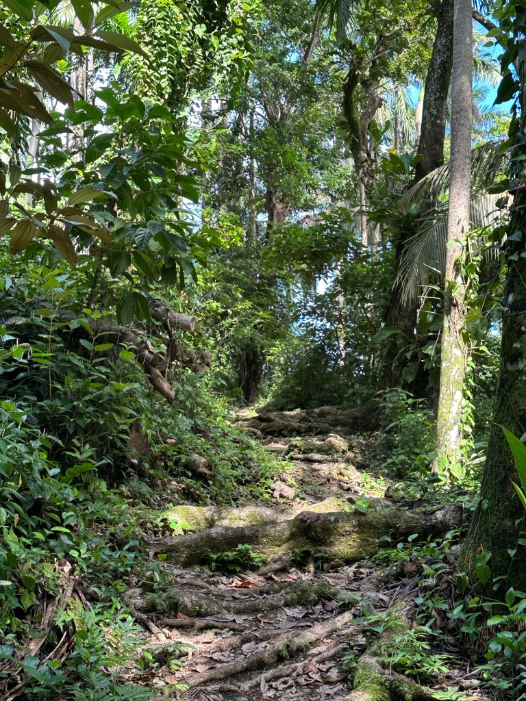 All around the island, was thick jungle running straight down to the rocky coastline. Birds circled high overhead and flittered through the jungle canopy. On the ground, leaf-cutter ants created orderly causeways through the jungle floor. And always, the sound of the powerful surf, permeated the cicadas and bird song.