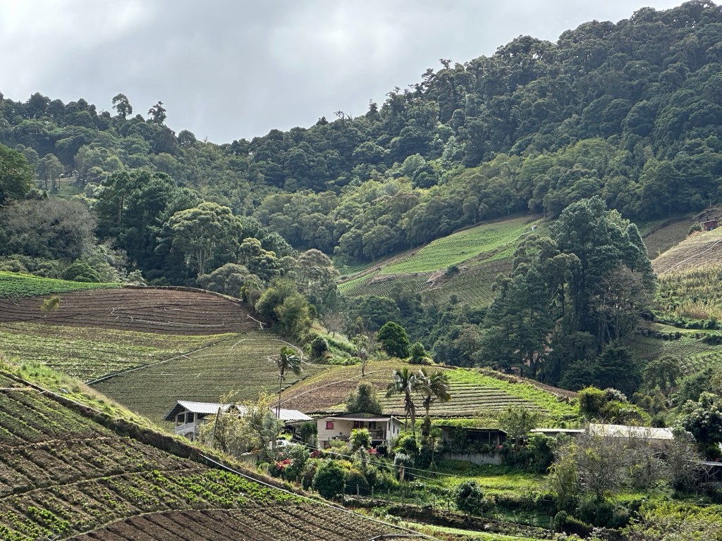 After checking out of my little hospedatje, I found the bus that would take me deeper into the mountains. The road up into the Cerro Punta valley winds through a narrow canyon with small streams cascading down the almost sheer walls in places. All being shrouded in lush vegetation. After a while, the canyon opens up into a wider valley patch-worked with tiny fields of crops. On the fringes of these little farmlets lies the Parque Internacional La Amistad, a 4000 sq km UNESCO World Heritage Site which stretches over both Costa Rica and Panama; its dark interior contrasting with the bright cultivation spread before it.