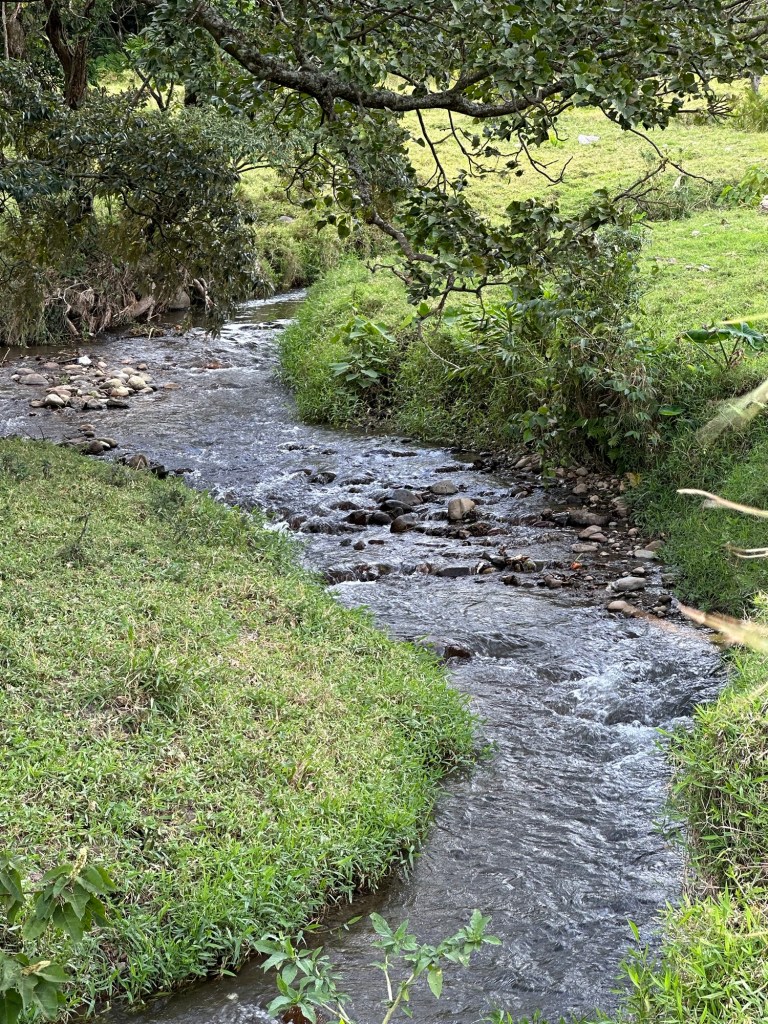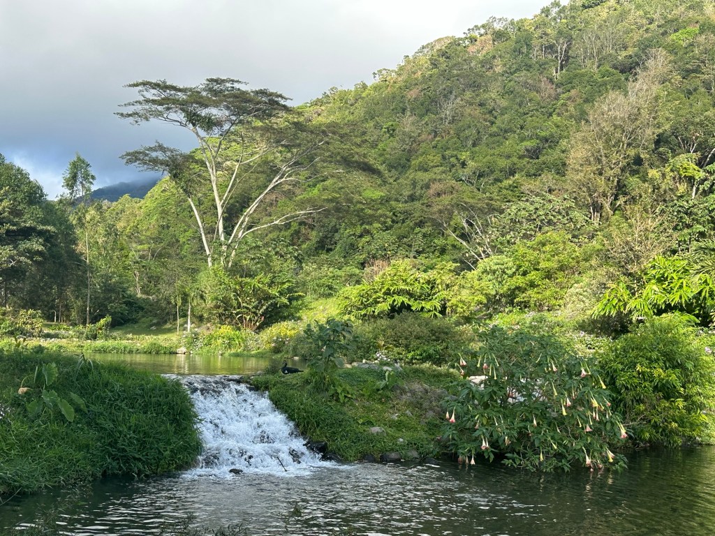 Down a gravel road of dubious condition, the trail made its decent towards the Rio Caldera and back towards town. I found a little ecological park which had been built on former flood plains of the Rio Caldera where river-fed lagoons and tropical gardens abounded. And made a delightful detour en-route back to the hostel.
