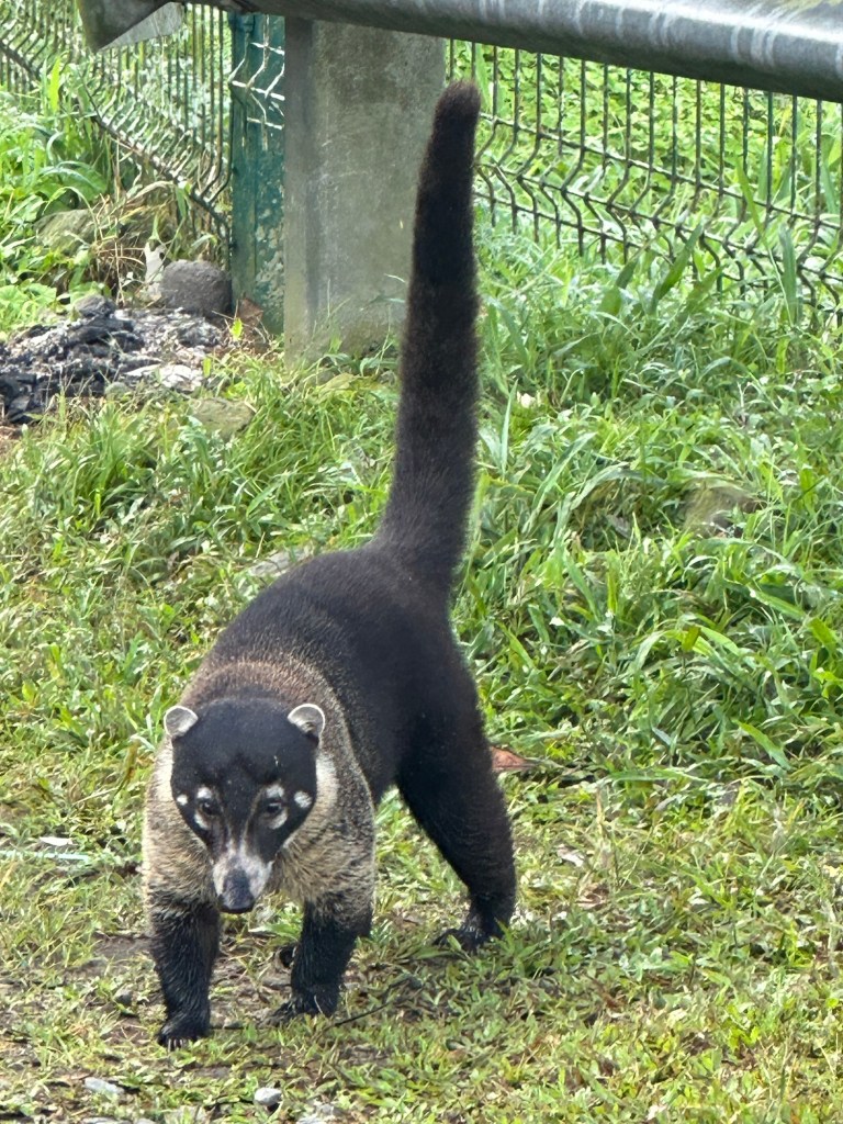 Up bright and early for my tour as I was being collected from my hostel at 7am. I was first on the schedule so spent about half an hour driving through La Fortuna gradually filling the mini-van. Then we were off up the mountain. I hadn’t had coffee so was pretty happy we stopped off for some en-route. Then, it was driving along spectacular jungle clad roads that wound their way up through the mountains. We got to the dam wall of Lago de Arenal where a large family of about 30 coatemundies were congregating. One of the more senior males of the group wandered over to check us out and ensure we were of no threat to the others.